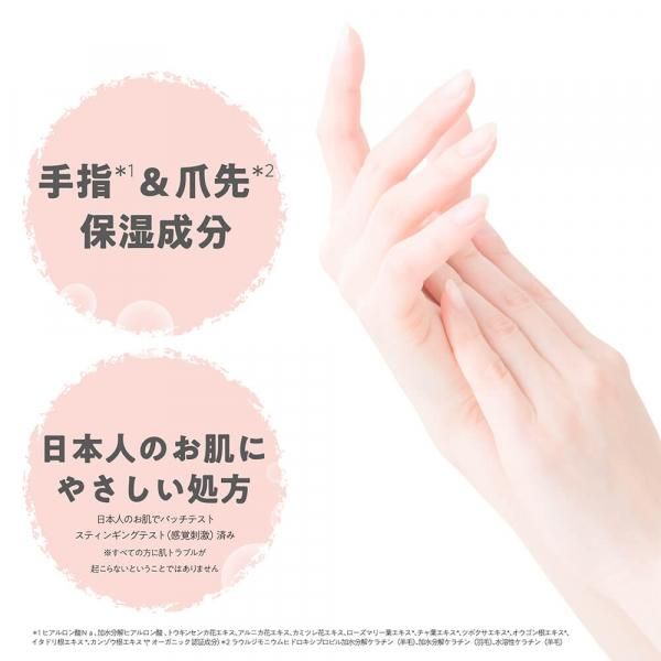 べたつかないサラッとタイプでカサカサ手肌&爪先までツヤすべに!ネイルケアもできるハンドクリーム。オールシーズンタイプ。お子様とのご使用もOK。(※お子様のご使用は「痛い」「かゆい」など自己表現のできる3歳以上を推奨しています。)日本人の肌でパッチテスト&スティンギング(感覚刺激)テスト済み(※すべての方に感覚刺激が起こらないということではありません。)