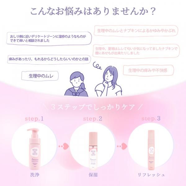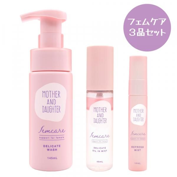 デリケート泡ウォッシュ、デリケートオイルインミスト、デリケート拭き取りミストの3商品をまとめて購入できるお得なセットが登場!初めてのフェムケアにおすすめです。