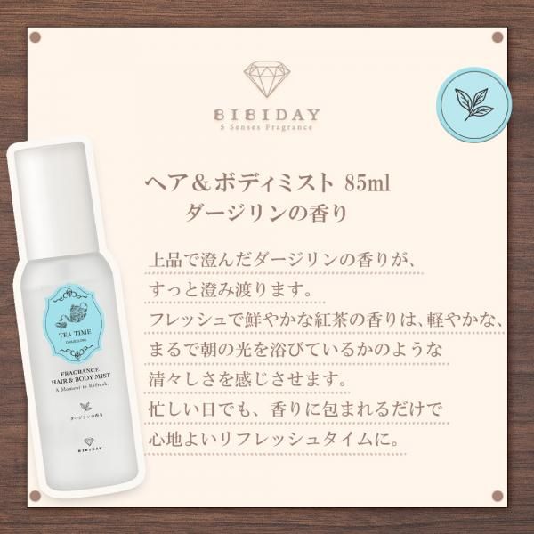 BIBIDAY・TEA TIME ヘア&ボディミスト 85ml ダージリンの香り