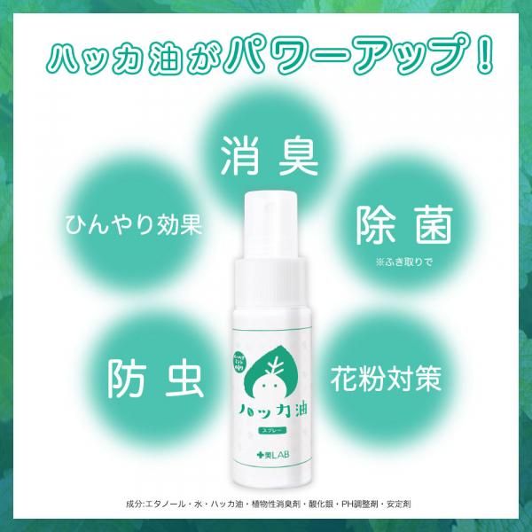 マスクに、消臭、虫除け、花粉対策、眠気防止におすすめのハッカ油スプレーです。爽やかで甘いバーベナミントの香り。