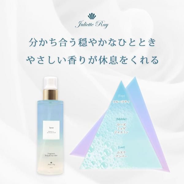 傷んだ髪にも素早く浸透し、ドライヤーの熱による乾燥から髪を守る加水分解ケラチン(羊毛)配合で、朝の寝癖直しにもぴったり。ボディミストとしてもお使いいただけるので、うっかり肌についても心配ありません。