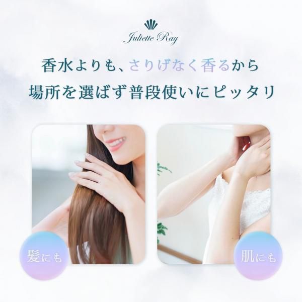 香水よりもさりげなく香り、揺れるたびにドキッとさせるあざとい髪を演出します。話題のCICA配合※1 保湿成分※2で、肌荒れを防ぎ、髪をやさしく保護します。(※1 ツボクサ葉エキス※2 加水分解ケラチン(羊毛)、ハトムギ種子エキス、ツボクサ葉エキス、加水分解シルク、ヒアルロン酸Na)