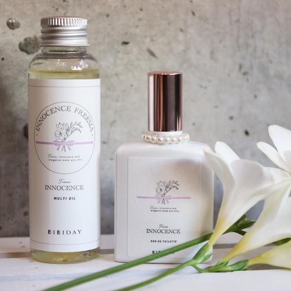 BIBIDAY・イノセンスフリージアのオードトワレとマルチオイルがお得なセットになりました♪